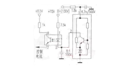 如果使用光耦,則必須使用如圖所示的比較放大器(也由分立元件組成)來分割采樣電壓(B+)的變化值并將其加到三極管的底部。與發(fā)射極上的穩(wěn)定電位相比,放大后的電位由集電極輸出。集電極電流的變化也是LED電流的變化,使得LED的亮度在敏感區(qū)發(fā)生變化。誤差信號經(jīng)反相放大后傳輸?shù)焦怆娋w管,再通過控制放大電路達到穩(wěn)定B+的目的。