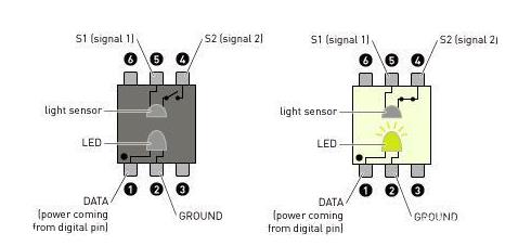 在圖片左邊國(guó)產(chǎn)光耦中,沒有電流通過 1 腳,LED 熄滅,沒有電流流過連接到 4 和 5 腳的電路。 如右圖所示,當(dāng)輸入電路通電時(shí),LED 亮起,傳感器 檢測(cè)到光線,關(guān)閉開關(guān)并啟動(dòng)輸出電路中的電流。